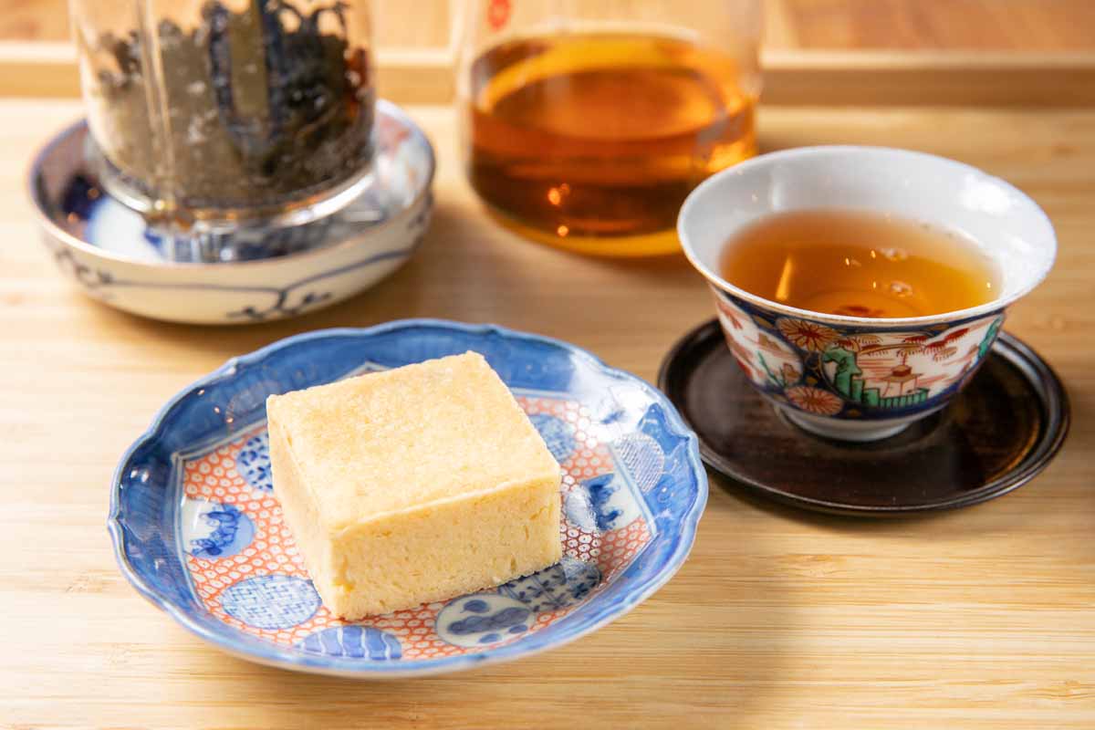 手作りパイナップルケーキ(350円)はバターの香りとザクッとした食感の生地の中にパイナップルの餡がたっぷり。本日の台湾茶(800円※フード注文で100円引き)と相性抜群です。テイクアウトもできます。