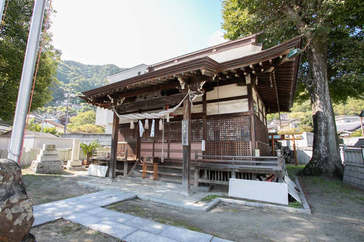 「岡本醤油醸造場」から電動スクーターで15分ほど走って到着したのは、木江(きのえ)地区。こちらは宮島にある嚴島神社の主神「市杵嶋姫命(いちきしまひめみこと)」が最初に降り立った場所という伝説が残る地区です。木江厳島神社は貞観3年(861)に創建とされています。島内には大串と矢弓にも嚴島神社があるので3カ所を巡って参拝するのもおすすめです。