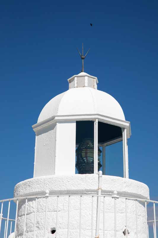 木江地区を後にして15分ほど坂道をぐんぐん上がると、目の前に美しい景色が!こちらは来島(くるしま)海峡の強い潮の流れを避けて航行する船の安全を守るために明治27年(1894)に設置された歴史ある灯台。石造りの当時の姿のまま、改修を行いながら現役で活躍しています。眼下に広がる瀬戸内海と青空に映える真っ白な灯台はフォトジェニック!