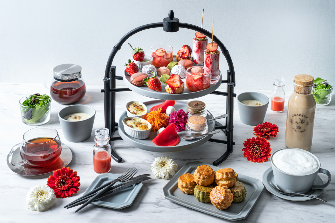 京都嵐山で堪能するストロベリー・アフタヌーンティー。日本伝統の美しい紅白で彩ったCHAVATY嵐山限定プラン