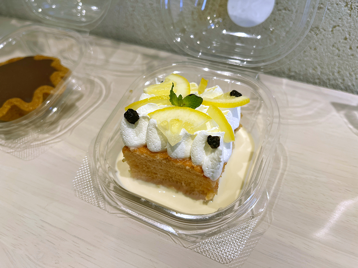 「3種のミルククリームケーキ トレスレチェ」は、3種類のミルク(コンデンスミルク・エバミルク・コンパウンドクリーム)をスポンジにひたひたに染み込ませ、甘くない生クリームと自家製レモンコンフィ&ブルーベリーをのせたぜいたくケーキ。ミントが爽やかに香り、意外にもさっぱりといただけます。