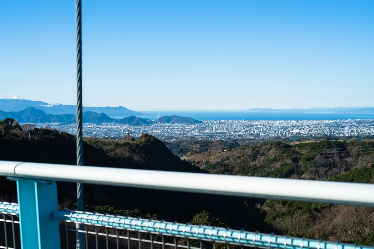 三島スカイウォークが誇る日本一は、吊り橋の長さだけではありません。橋から見える水平線は、日本一深い駿河湾。