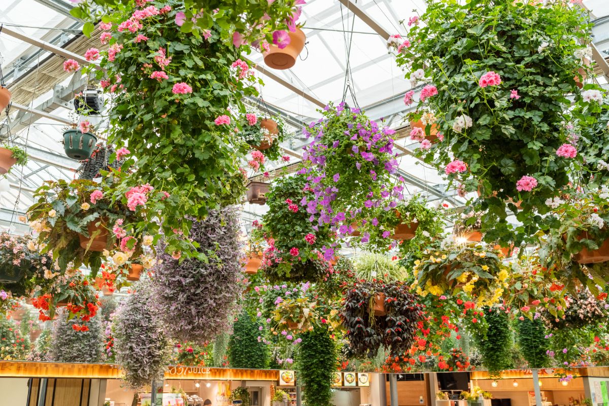 SNS映え!花々のシャンデリアが天井を埋めつくす「スカイガーデン」で、おみやげ選び