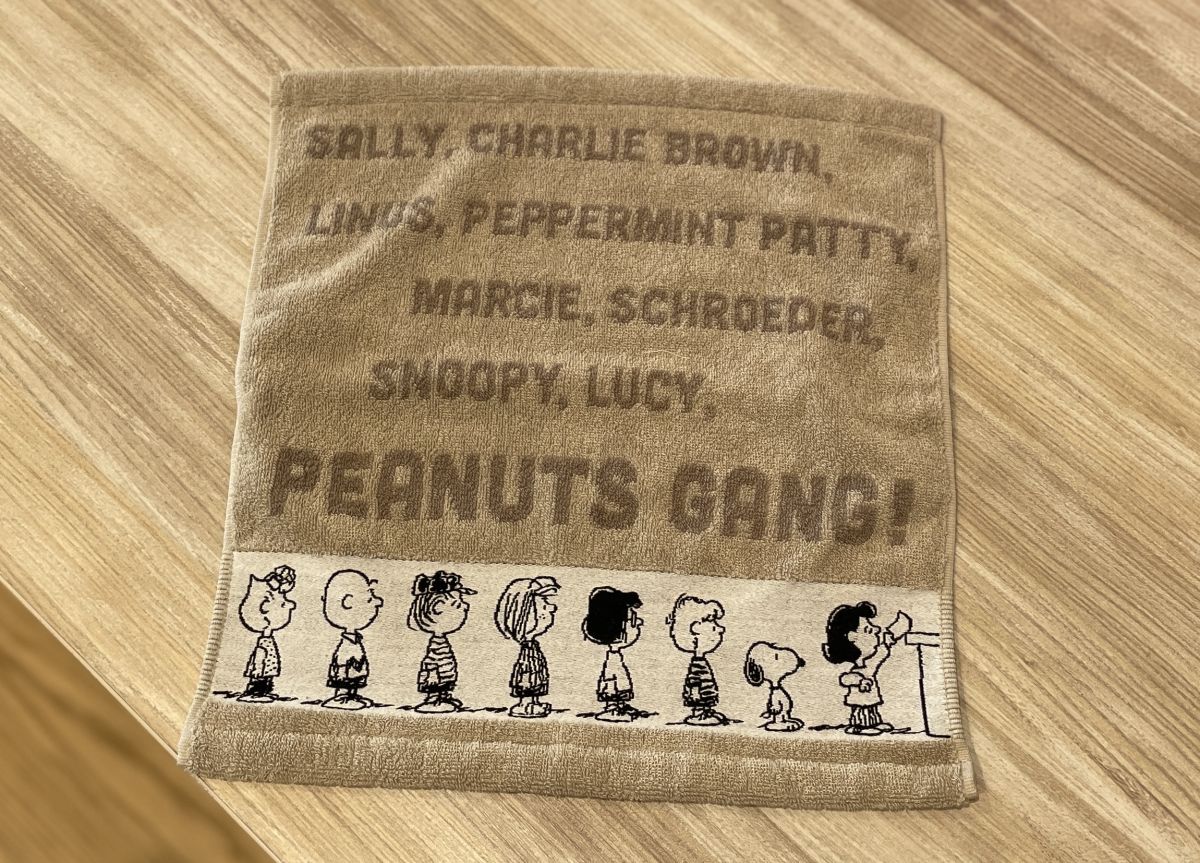 ピーナッツ・ギャングが勢揃い!アースカラーで柔らかい肌ざわりのタオルです。