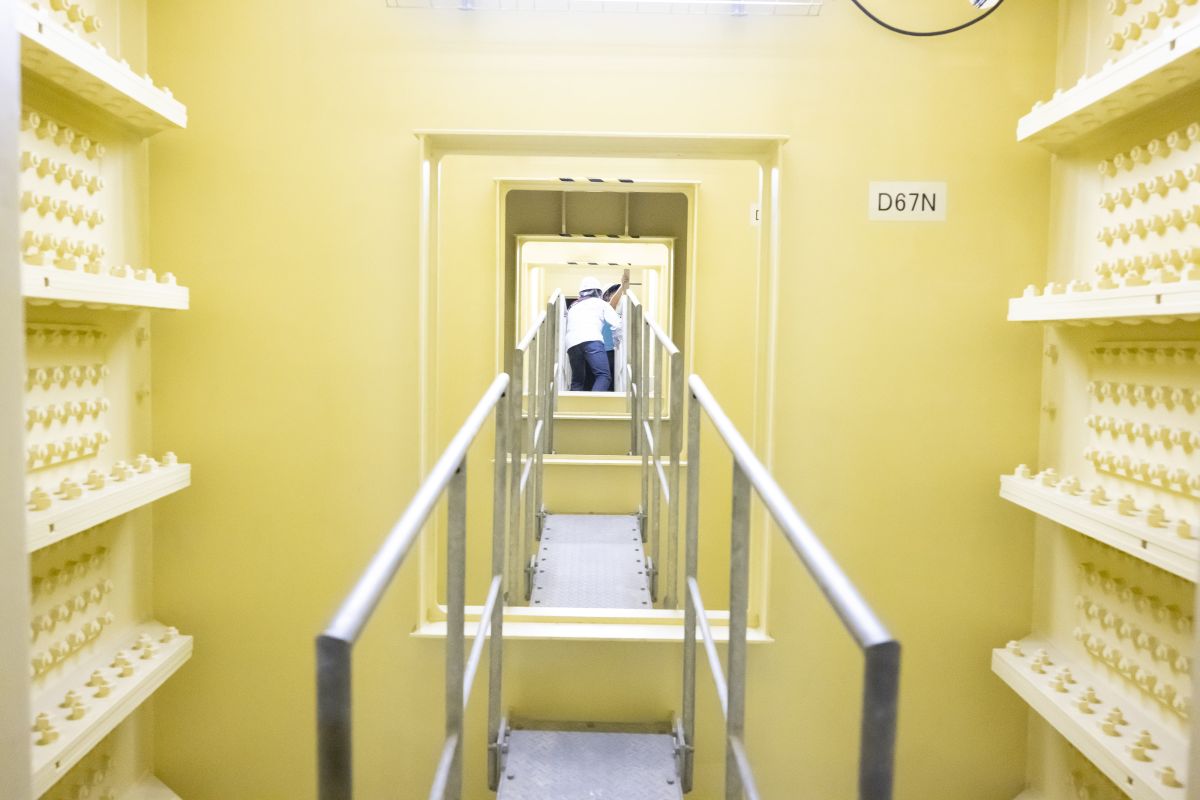 海抜70mの歩道脇にある管理用に設けられた特別な入口から、主塔の中へ。