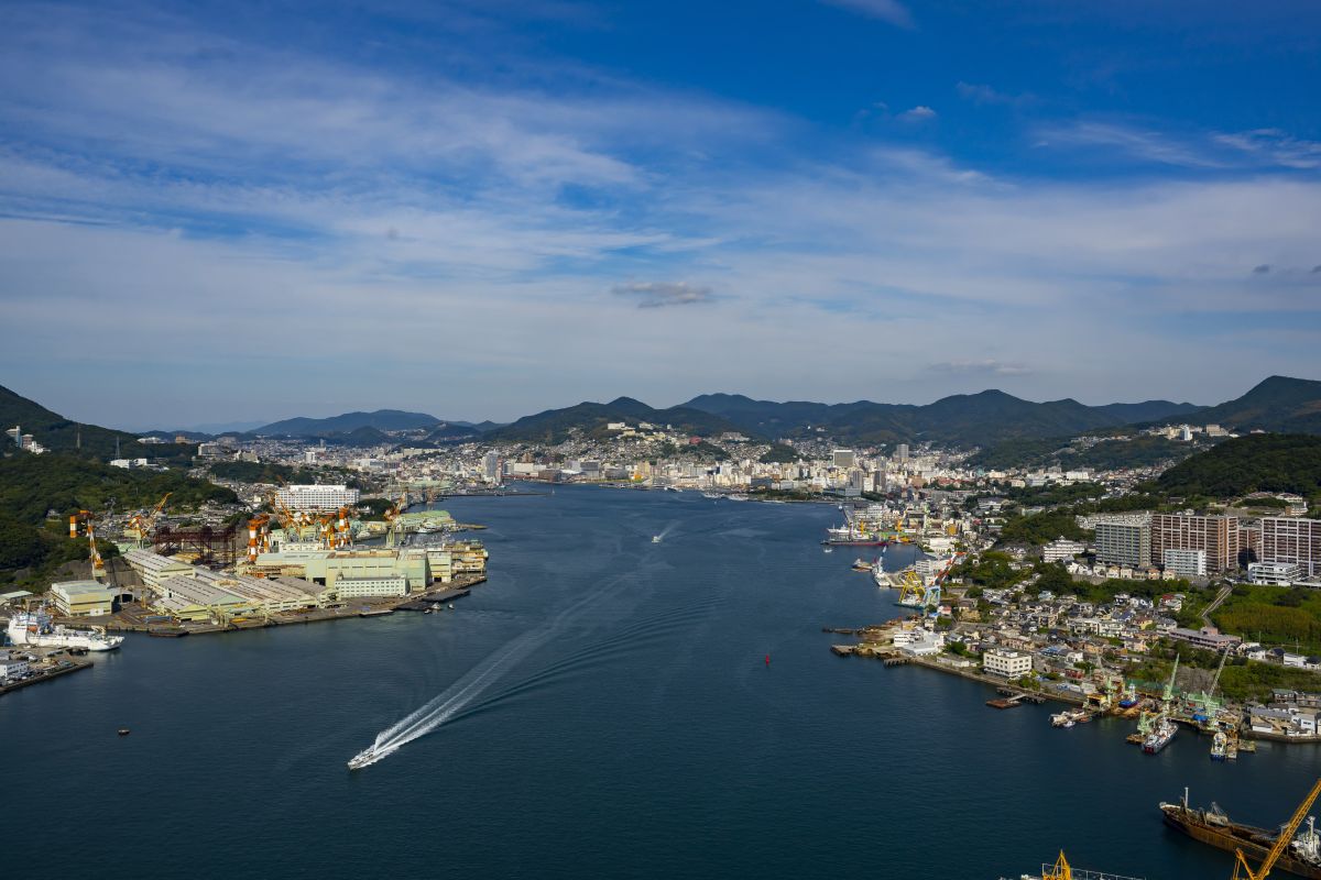 入江の水深が深く、波風が穏やかで、外界から中の様子が見えないなどの条件が寄港に適していた長崎港。約450年前の安土桃山時代、初めてポルトガルの船がやってきたことを機に開港しました。カステラやビードロなど長崎名物の多くはポルトガル人の影響で生まれたもの。美しい長崎港を前に、華やかな長崎の歴史にも思いを馳せてみるのもよさそうです。