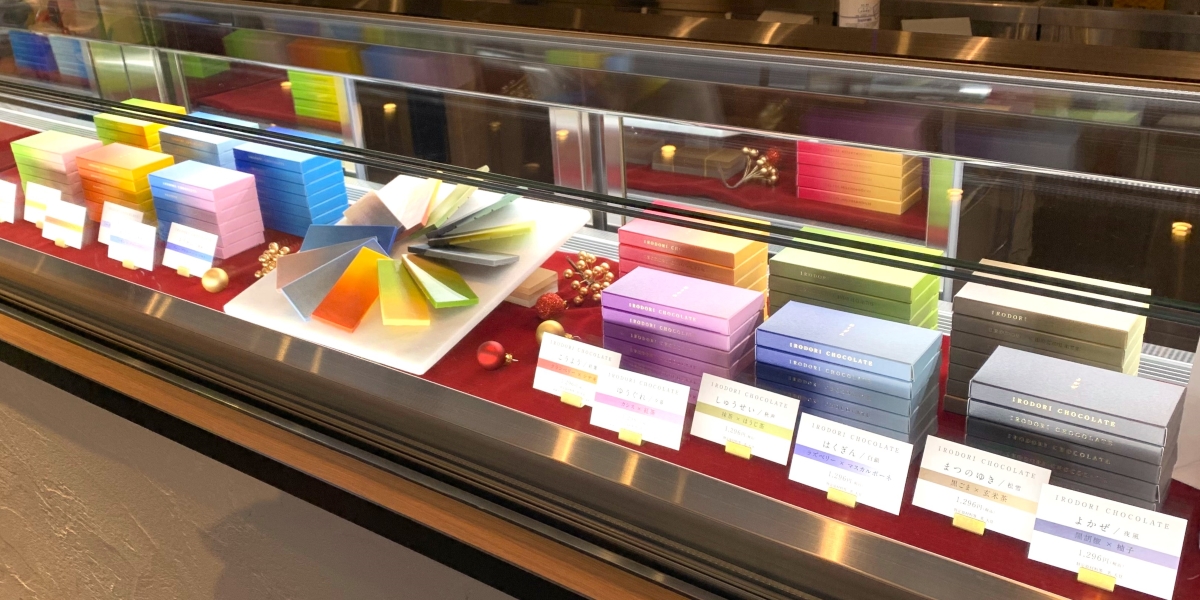 2023年の日本パッケージデザイン大賞の特別賞を受賞したというパッケージは、目にも鮮やか。カラフルな色合いに、どれにするか悩んでしまいますね。「イロドリチョコレート」は単品購入も可能なので、気になるフレーバーをおみやげにするのもオススメです。