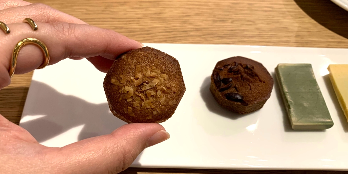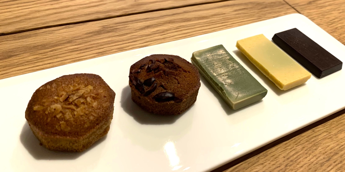 セットでいただけるのが「インドネシア産カカオニブを使用したフィナンシェ」と「スリランカ産ココナッツを使用したフィナンシェ」の2種類。