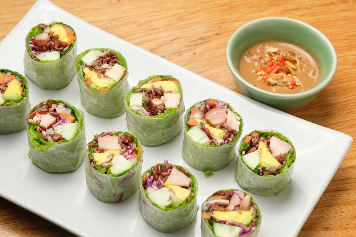 その中でも特におすすめなのが「Fresh Chicken Rolls(鶏肉の生春巻)」9万5000VNDです。鶏肉や玄米を巻いたヘルシーな一品で、前菜の定番メニュー。生春巻はこの他にもアボカド入りなど約10種が揃っているので、ぜひ食べ比べてみてください。