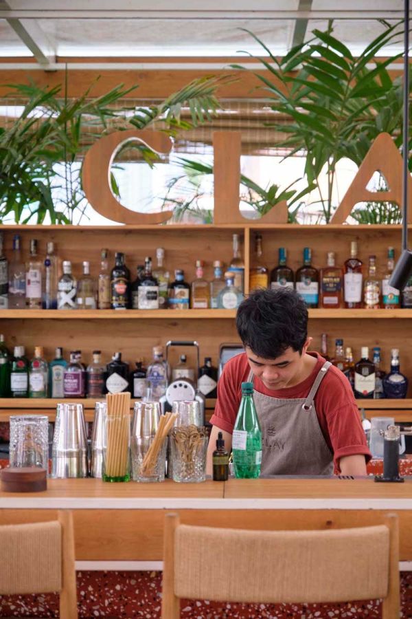 広い店内には多くの席がありますが、週末やディナー時にすぐに予約で埋まってしまうのがテラス席です。カップルでロマンティックに、友人たちとパーティー気分で。外国人だけでなく、地元の人々も多く訪れ、思い思いの時間を楽しんでいます。