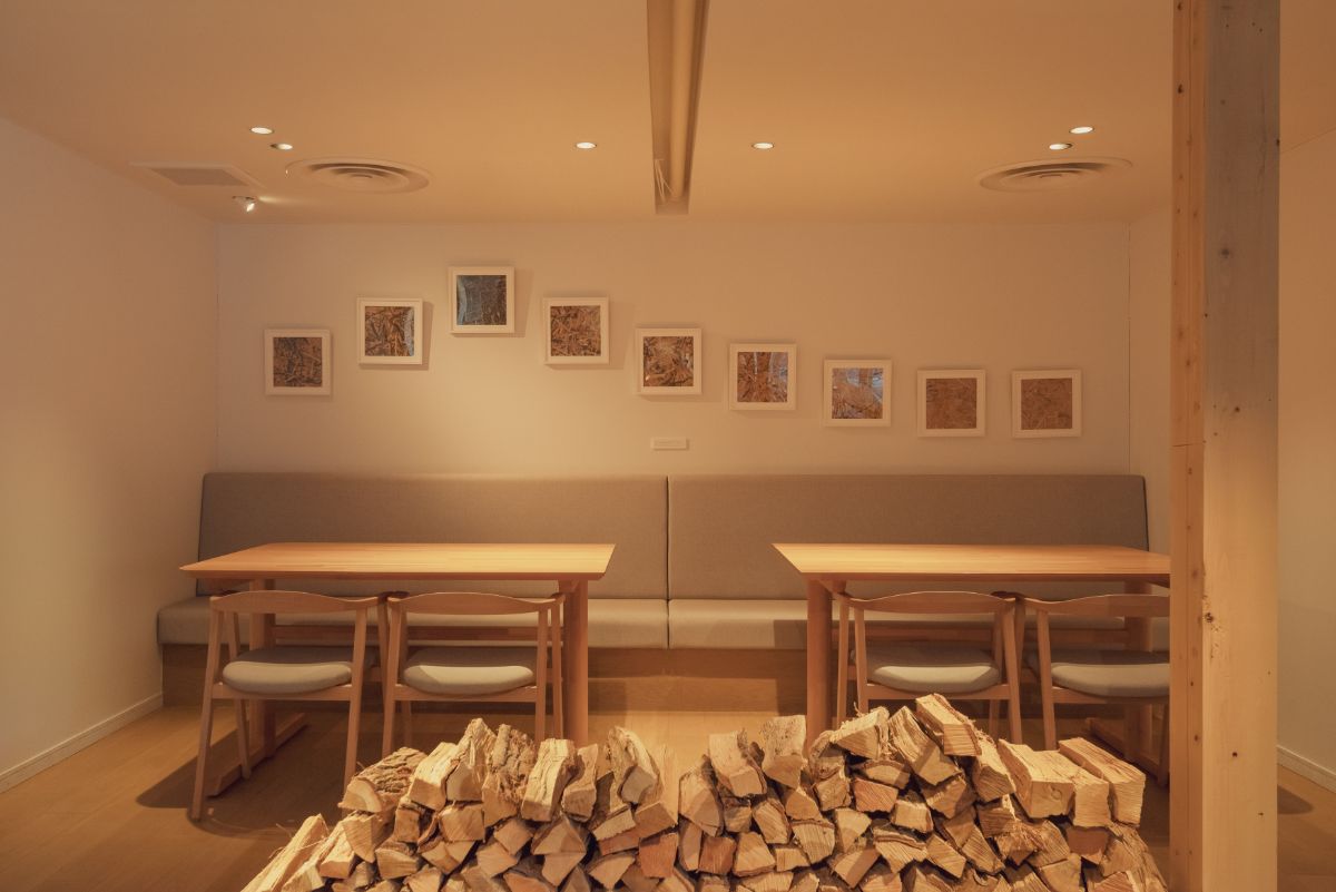 天井を渡る白いロープは、山のシルエットをイメージしています。見る角度によって富士山の稜線が現れるので、ぜひチェックしてみてくださいね。