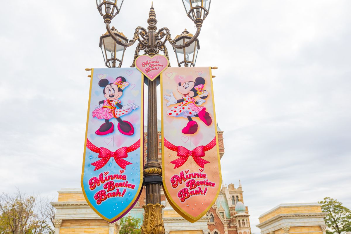 エリア内を飾るバナーも4種類と、ミニーのかわいらしさがあふれるスポットに。
