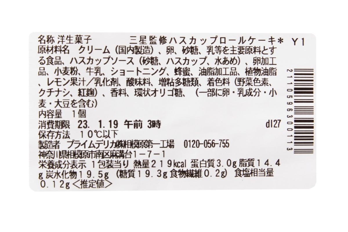 2023年1月17日発売の「三星監修ハスカップロールケーキ」270円。