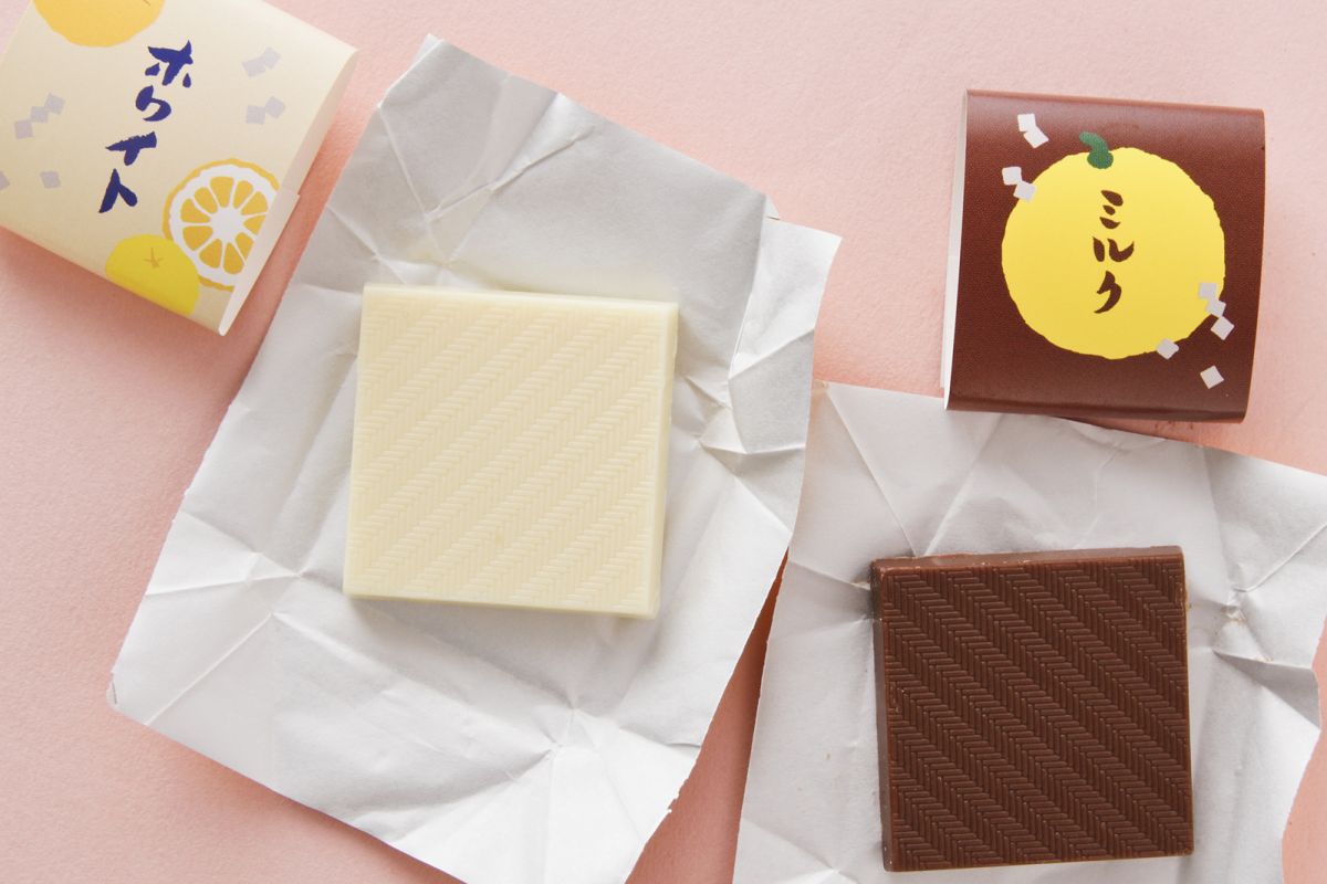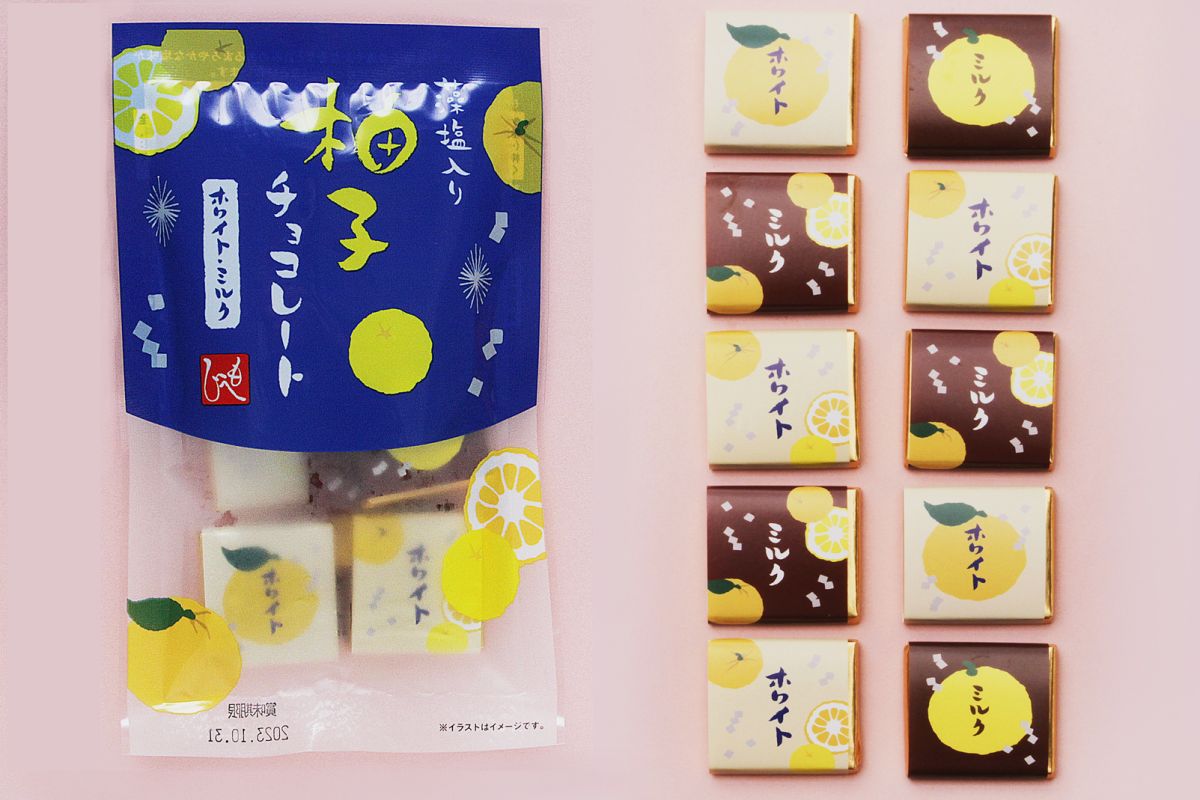 同僚に贈りたい「柚子チョコレート(藻塩入り)ホワイト・ミルク」398円