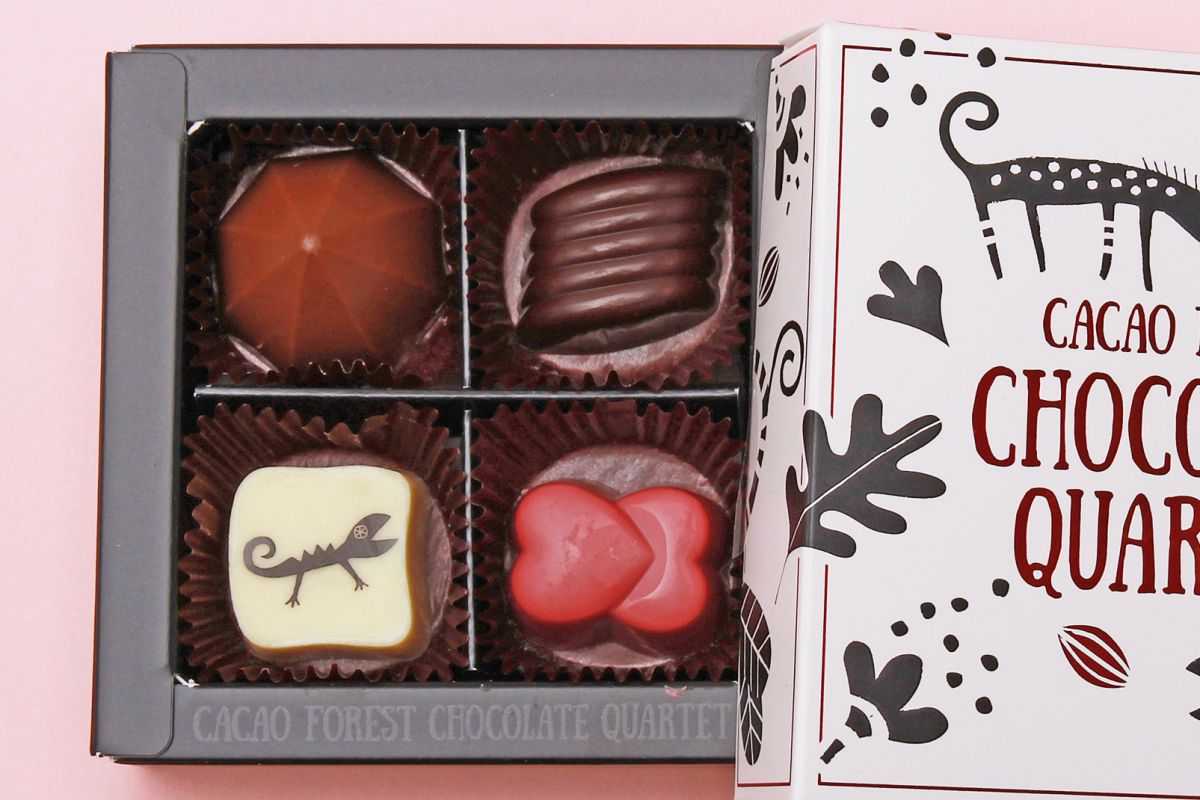 友だちに贈りたい、4種のアソートチョコ「カカオの森 チョコレートカルテット」475円