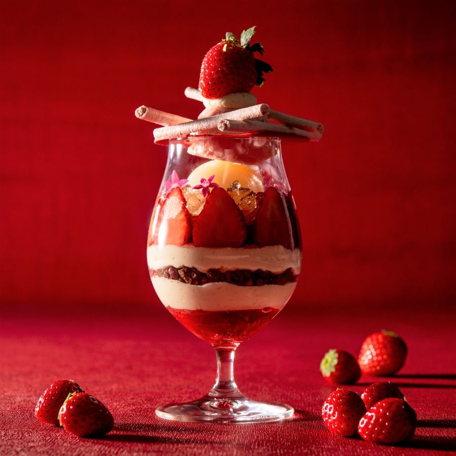 ラウンジ&バー「マリンブルー」では、アフタヌーンティーとともに、いちごの魅力を余すことなく楽しめるパフェ「パルフェ フレーズ ~いちごのパフェ~」が今季初登場。アーティスティックな盛り付けもさることながら、最後のひと匙まで楽しめるよう細部にまでこだわったパティシエのセンスあふれる逸品に仕上がっています。