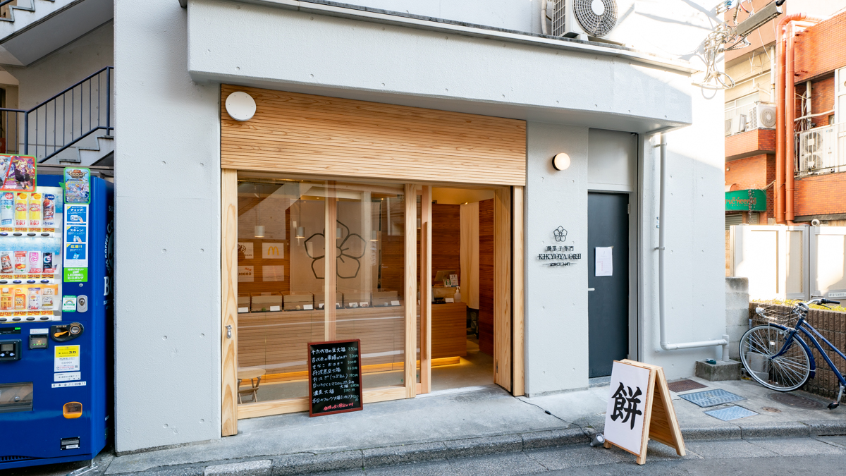 駒沢大学駅のすぐ側の路地裏、「餅」というシンプルな看板が目印の「餅菓子専門《KIKYOYA ORII -since 1607-》」。2022年11月に登場した新しい店舗ですが、その歴史は店名にあるとおり慶長12年(1607)まで遡ることができます。まだ江戸幕府が誕生して間もない時代、現在の三重県伊賀市で創業した老舗菓子処「桔梗屋織居」。その19代目が新たに立ち上げた餅菓子専門なのです!