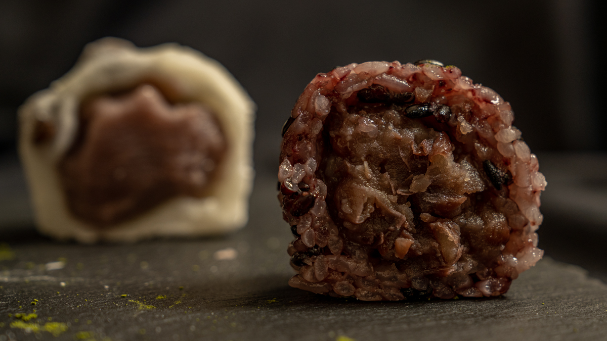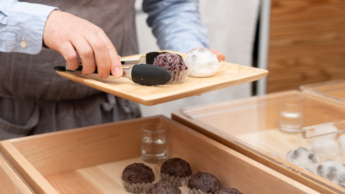 シンプルだけに素材のよさが際立っていた「十九代目の豆大福(こし餡)」、斬新な食感ながらも親しみがあり味わい深い「古代米の薬膳おはぎ(黒米・つぶ餡)」も大満足!