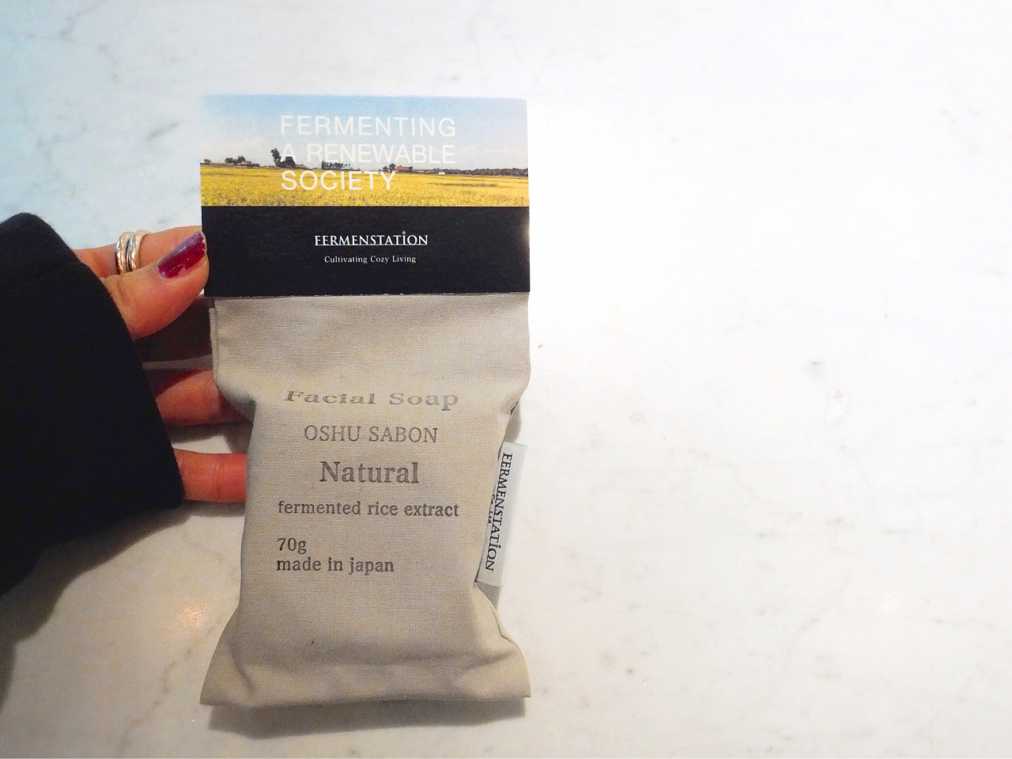 「洗顔石けん 奥州サボン」はかわいい布のパッケージに入って販売されています。石けんには岩手県産の無農薬玄米と酵母で発酵させた、米もろみ粕を配合。米ぬか、酵母、麹たっぷりで保湿効果が続くのだとか。ギフトにもおすすめです。