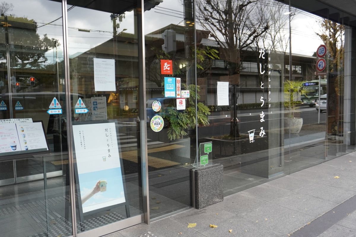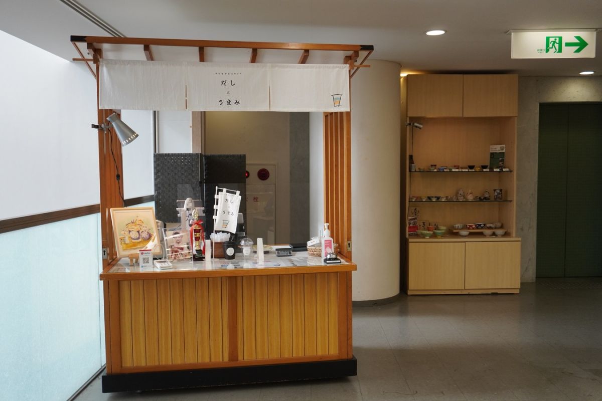 「すりながしスタンド だしとうまみ」があるのは、京阪神宮丸太町駅から東へ徒歩約10分の場所。平安神宮や岡﨑神社にもほど近い岡崎エリアの、丸太町通り沿いに立つ「京都ハンディクラフトセンター東館」にあります。京都ハンディクラフトセンターは、京都の伝統工芸品をはじめ、京都や和を感じられる品々の購入や体験もできる施設。幅広く、いろいろな京都を感じることができます。