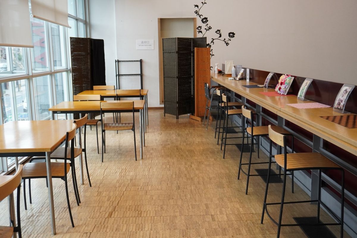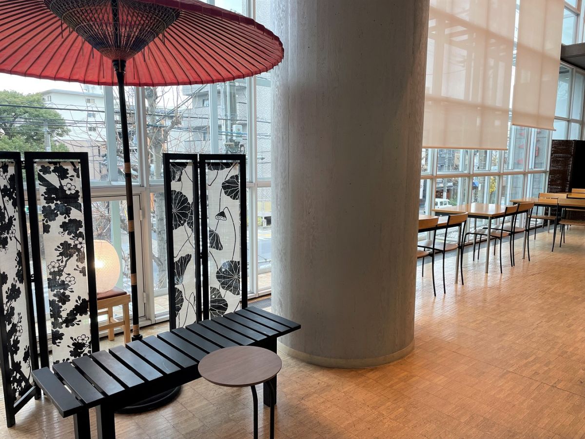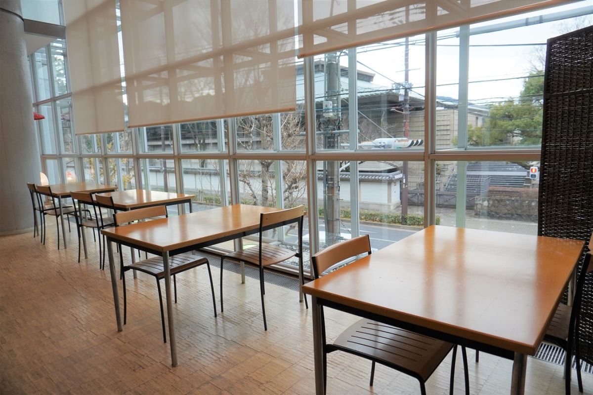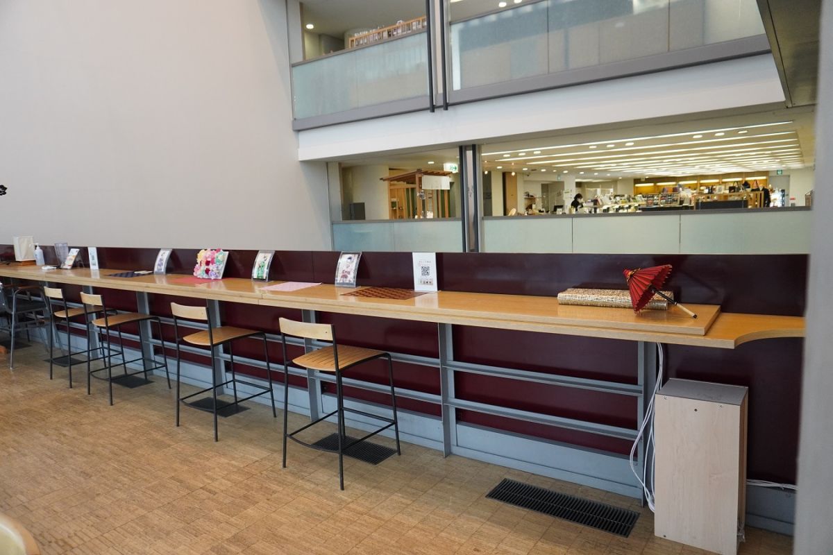館内にはイートインスペースが充実。2階には、一面ガラス張りの明るいイートインスペースが広がっていて、ゆったりと過ごすことができます。