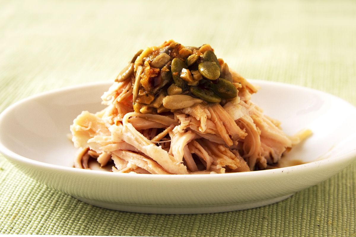 ナッツソースで和えることで、さっぱりとしたサラダチキンにコクと、心地よい歯ごたえがプラスされます。サラダチキンはいろいろな味付けのものが販売されていますが、ナッツソースを使うなら、シンプルな味付けのものがおすすめです。