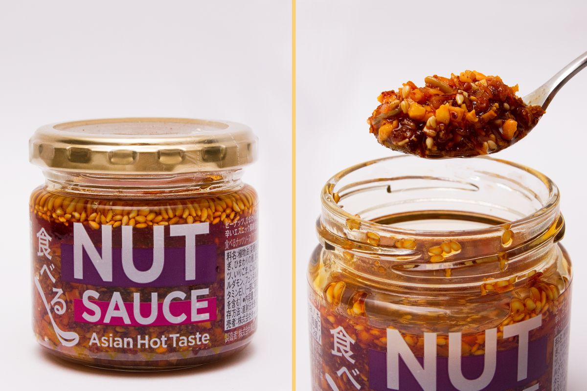 「食べるナッツソース」には、アジアンホット味 100g 442円もあります。こちらも刺身サラダやサラダチキンに合いそうですし、ギョーザ、しゃぶしゃぶのお肉などに付けてもおいしそう!