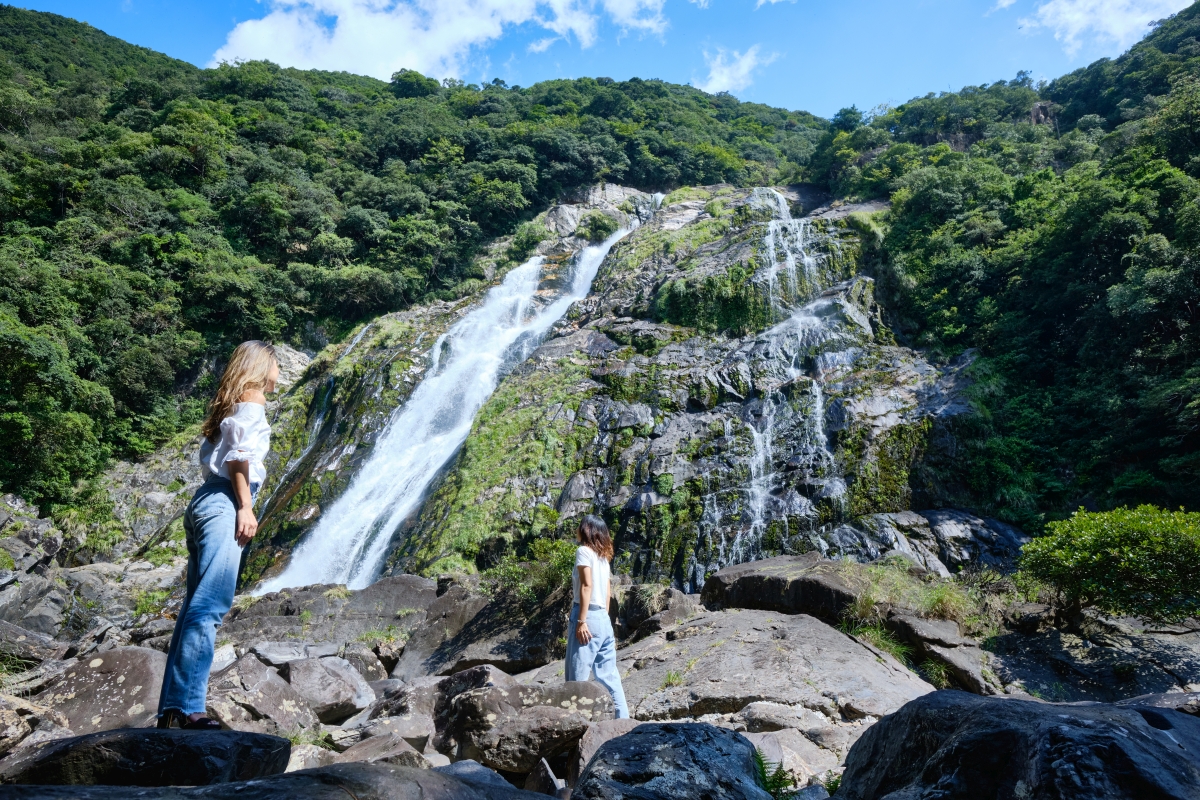 屋久島は一周約100kmの道のりですが、車でグルっと一周するとたくさんの絶景に出合えます。そんな屋久島のドライブスポットとして外せないのは「滝」。ドライブで簡単に立ち寄れて、圧巻の水量に感動させられるのはなんといっても「大川の滝(おおこのたき)」と「千尋の滝(せんぴろのたき)」。特に、「大川の滝」は日本の滝百選にも選ばれた豪快な滝で、間近で滝の勢いを感じられるので、水の島とよばれる屋久島を体感できます。