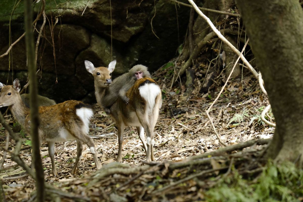 世界自然遺産エリアを通過する「西部林道」は、車で進むと、ヤクシカ(屋久鹿:ニホンジカの固有亜種)やヤクシマザル(屋久島猿・ヤクザル:ニホンザルの固有亜種)の遭遇率が非常に高い森の道です。気軽に世界自然遺産の森の豊かさを体験し、動物の生活を見ることができます。