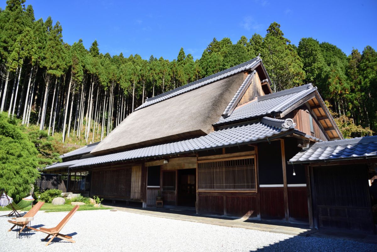 築300年ほどの茅葺屋根のある古民家をリノベーションした「うだ薬湯の宿 やたきや」。奈良県の東部、大和高原(やまとこうげん)の標高約400mの高台にあるオーベルジュです。運営するのは地元で約100年続く畳店で、古きよき榛原(はいばら)の文化や技を未来に残していきたいという想いのもと、2022年5月にオープン。ランチ・ディナーのみの利用もOKとあって、すでに遠方からも客が訪れる人気スポットになっています。