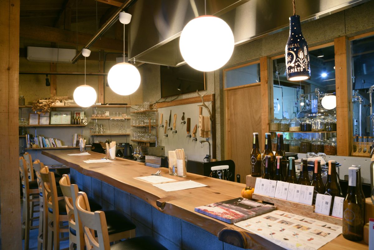 「奥大和ビール TAP ROOM」はカウンター席が中心で、その奥に醸造室があります。また、ゲストハウス「奥大和ビール TAP to BED」も併設されていて、ビールを満喫した後、ゲストハウスに宿泊してゆっくり過ごす…という楽しみ方もできます。