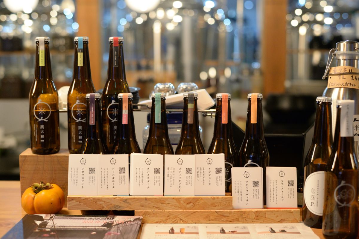 ビール好きの店主・米田さんがオリジナリティのあるビールを提供したいと2018年に地元・宇陀市にオープンした「奥大和ビール TAP ROOM」。古民家をリノベーションした建物が印象的です。ここで奈良県産の桃やブルーベリー、宇陀産の和ハーブ・大和当帰などを使用したクラフトビールの製造と提供・販売をしています。
