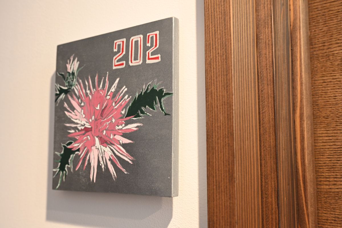 室内には、サザエや隠岐牛など島の風物を描いたオリジナルのルームプレートや漁火のランプを使った照明など、あちこちに海士町らしい意匠がちりばめられています。