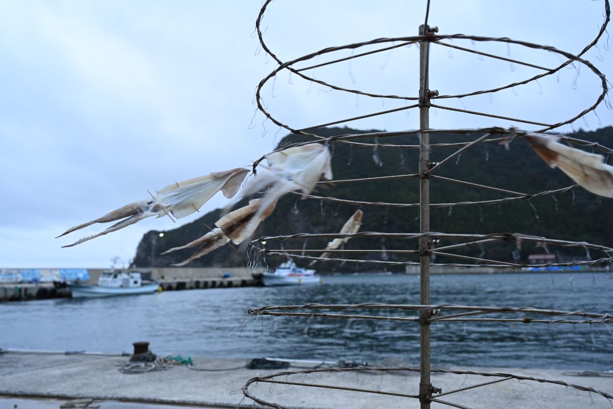 海を背景にくるくる回るイカの光景は、隠岐ならではの風物詩です。一昼夜回し干ししたイカは、適度に水分が抜けて甘みがアップ。焼いて食べると、自然の塩気がついていて、とても軟らかです。体験した翌日に真空パックにして持ち帰ります。冷凍保存もできるので、隠岐の思い出を家に帰ってからお酒とともに味わうこともできますよ。
