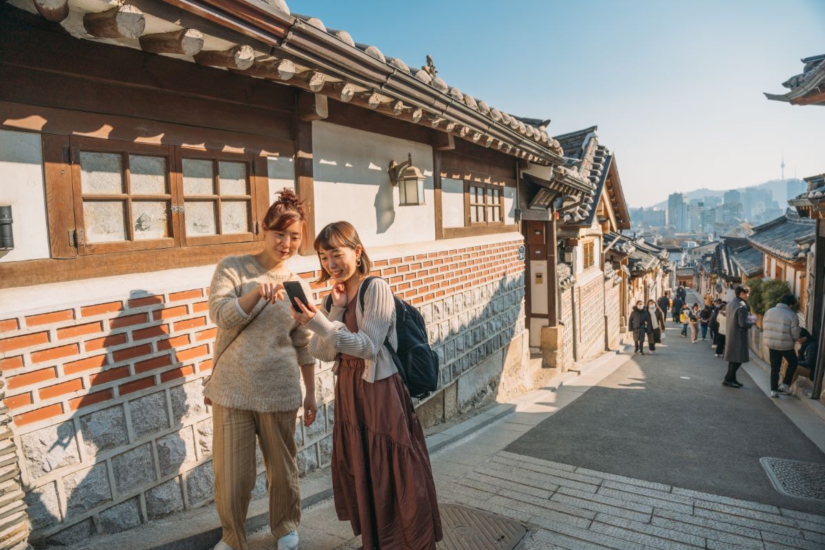 ホテルに荷物を預けた後、まず訪れたのは、人気観光スポットのひとつ「北村韓屋村」。撮影機材など荷物が多くなりがちでも、 Wi-Fiルーターを持ち歩く必要がないから、荷物を減らせてうれしい♪