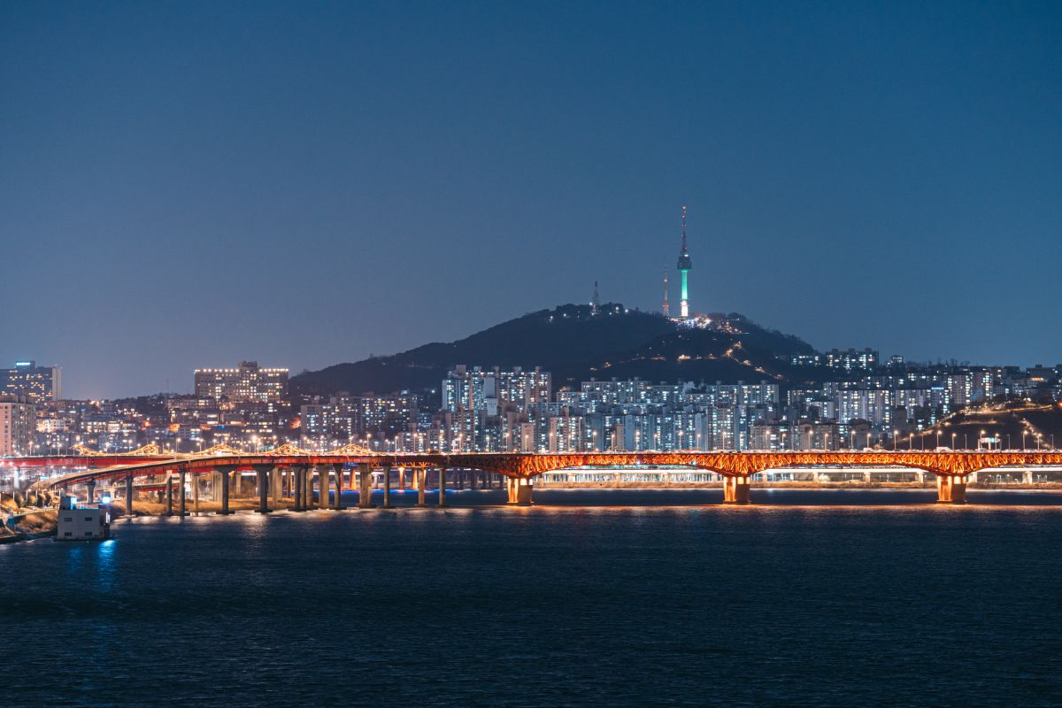 「永東大橋」に立ってカメラを構えると、ソウル市内を流れる大河「漢江(ハンガン)」と「Nソウルタワー」、星のようなビル群などがフレームイン。ロマンチックで心惹かれる夜景を前にして、次々とシャッターを押す手が止まりません。
