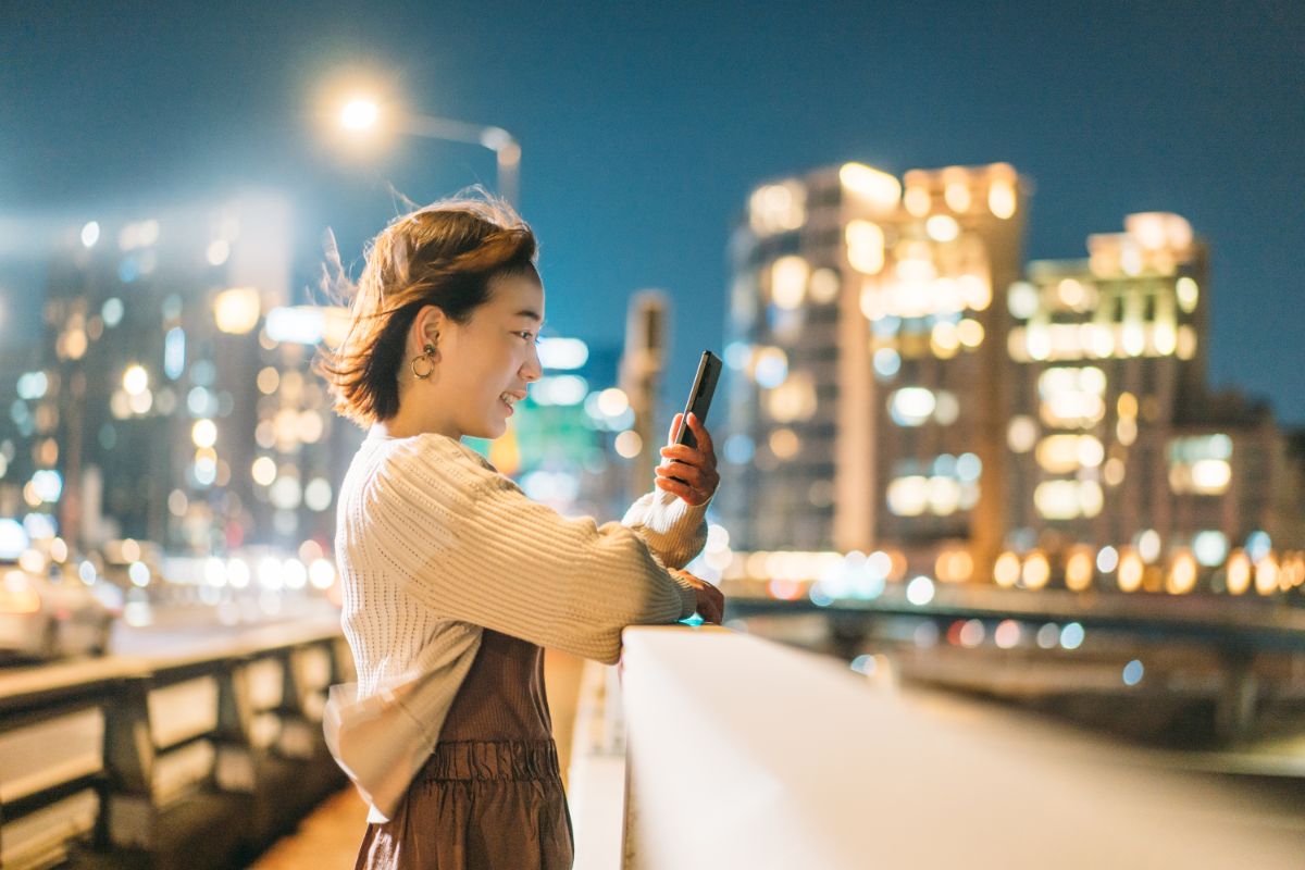 夜景撮影を終えたら、さっそくお気に入りの1枚をセレクトしてSNSに投稿。写真だけでなく、動画もその場でアップできちゃいます!