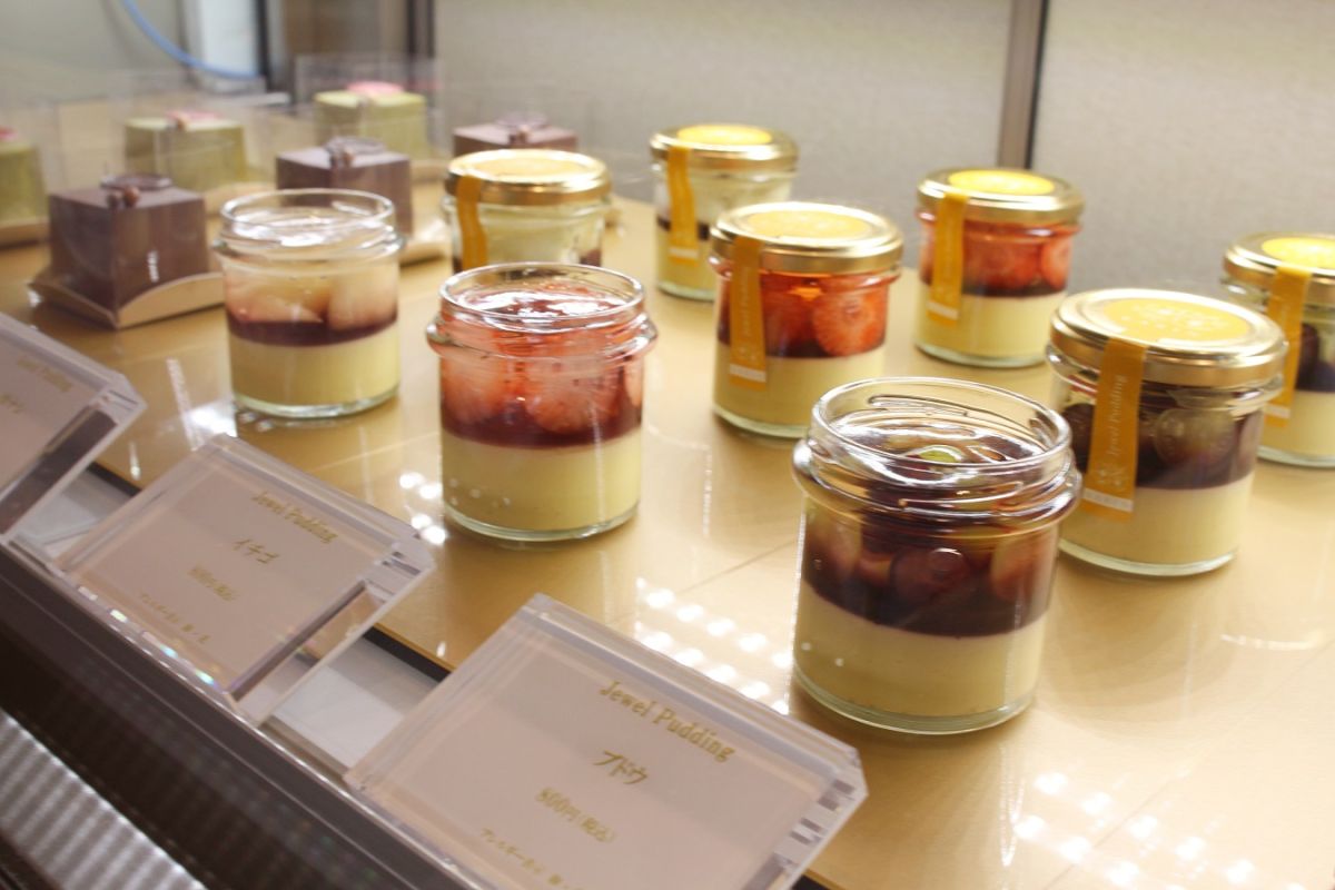 店頭には宝石のようにフルーツを散りばめたシフォンケーキ「ジュエルシフォン」が3種、濃厚なショコラテリーヌの「モデルヌ キュブ」が3種、ドライフルーツを生地に練り込んだパウンドケーキ「カトルカール キュブ」が3種、なめらかなプリンにフルーツをたっぷりと使用した「ジュエル プリン」が3種と常時12種類のスイーツを用意しています。