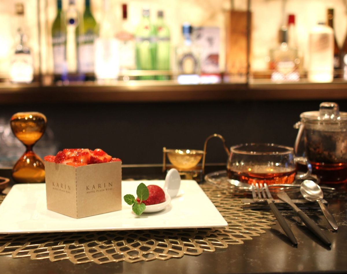 「KARIN北新地」ではお店で販売されているスイーツを、隣接する「un-treize(アントレーズ)」でイートインすることもできます。重厚感のある扉に少し身構えてしまいそうになりますが、「おひとりさまでも大歓迎です!」とのこと。公式サイトから事前予約しておくと、入店がスムーズです。