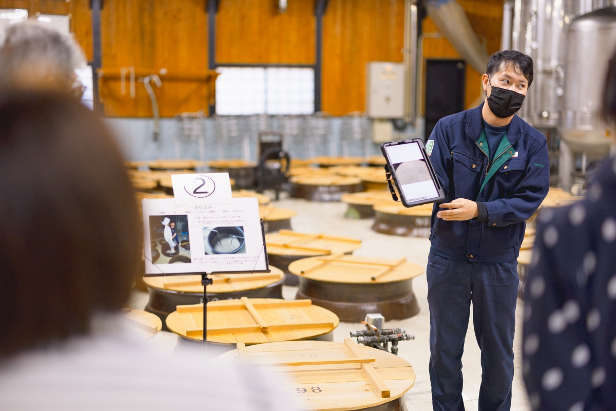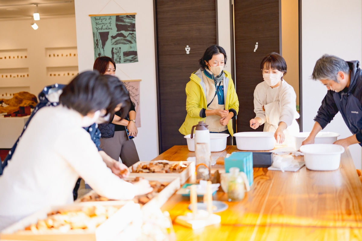 いつもなら山あいの茶畑で開催されるという、2代目店主の渡邉さんによる茶園紹介およびお茶体験(期間限定)。この日は雨のため、店内での開催となり、自社の茶葉を使ったオーガニックな弁当、緑茶、期間限定で人気のほうじ茶のソフトクリームをいただきました。