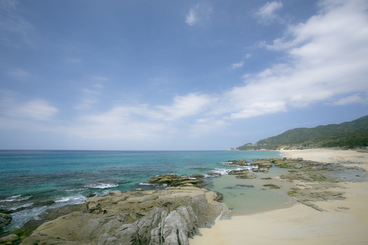 コバルトブルーの海と白い砂浜のコントラストが美しい「永田いなか浜」。海に沈む夕陽も絶景です。日本一のウミガメ産卵地でもあり、ラムサール条約にも登録されています。