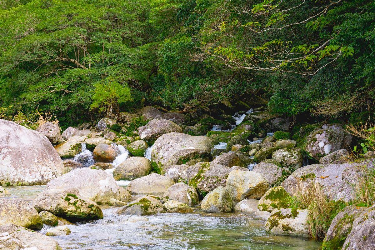 家族で屋久島旅行を楽しむなら、自然や屋久杉にふれることのできる体験を。島の西側沿岸部を走る県道78号・通称「西部林道」は、島内で唯一の沿岸部から奥岳へと連なる世界自然遺産登録エリアにあります。