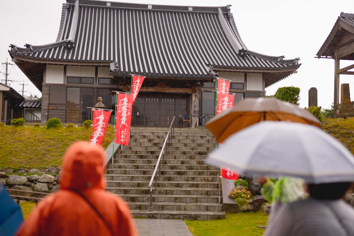 「久本寺」は、京都の本能寺、尼崎の本興寺の末寺とされ、長享2年(1488)に日蓮宗の日増によって開山されました。本堂の屋根には種子島氏家紋の「三つ鱗」家紋が刻まれ、同氏の承諾の元に、日増の開山、布教が及んだ経緯を伝えています。