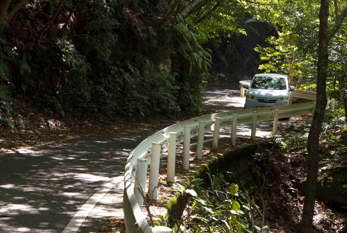 日本有数の規模を誇る照葉樹林を通る道で、車中から手付かずの自然を観察でき、ファミリーにもおすすめのスポットです。シイやタブなどの照葉樹が覆う道を進んだり、鬱蒼とした場所を抜けると木々の向こうに青い海が見えたりするなど、豊富な風景も魅力の一つ。ただし、道幅が狭く蛇行している箇所も多いので運転は慎重に。
