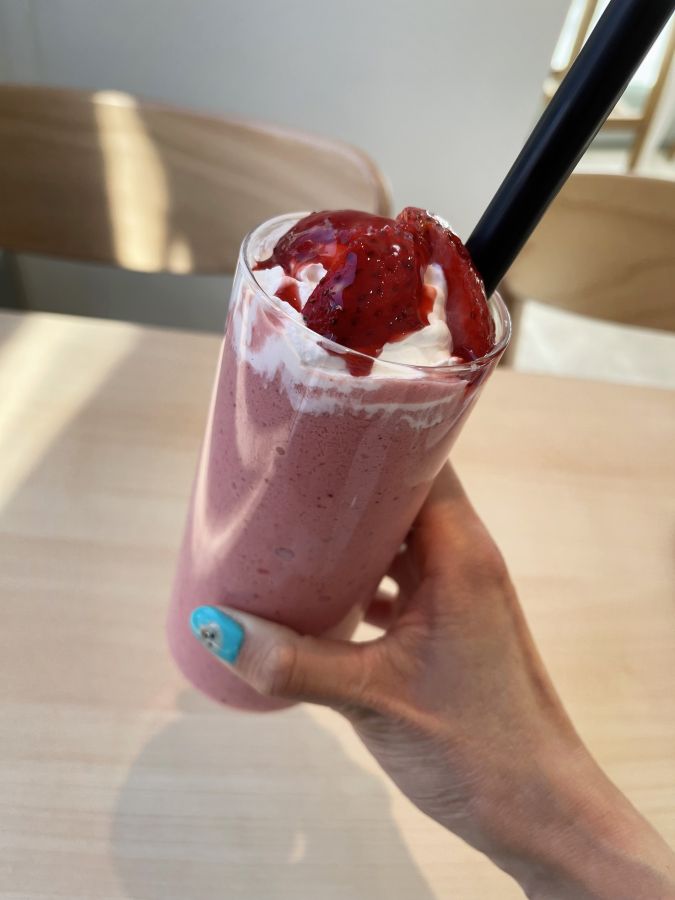 シーズン限定のドリンクメニューも展開していて、3月からは「ストロベリースムージー」780円が登場。たっぷりのイチゴとヨーグルトホイップを使うことでさわやかな味わいに仕上げています。