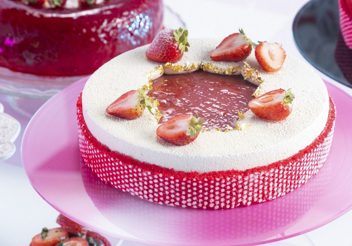 「ぷっくりいちごのフラワーケーキ」は、花柄の食器のようなビンテージ感が印象的。キュートで写真映えする一品に仕上がっています。