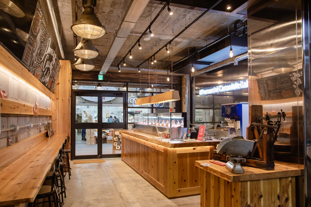 堀川三条から千本三条まで、約180軒もの店舗が連なる三条会商店街。堀川通側の入口近くに店を構える「Premarché Cacaolate Lab」は、同じ商店街で自然食のレストランやジェラートショップを運営するプレマが、2023年1月にオープンさせた新店舗です。木をふんだんに使ったおしゃれな外観に「何のお店だろう」と足を止める人も少なくありません。