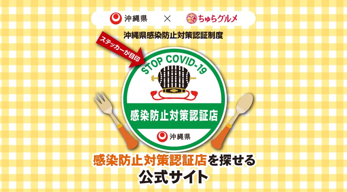 沖縄県では、コロナ禍において県民や旅行者が安全に安心して沖縄を楽しめるように、「安全・安心の島沖縄」という指針のもと、さまざまな取組みが行われています。その取組みのなかで、各飲食店が行っているコロナ対策を県が認証する「沖縄県感染防止対策認証制度」を実施。