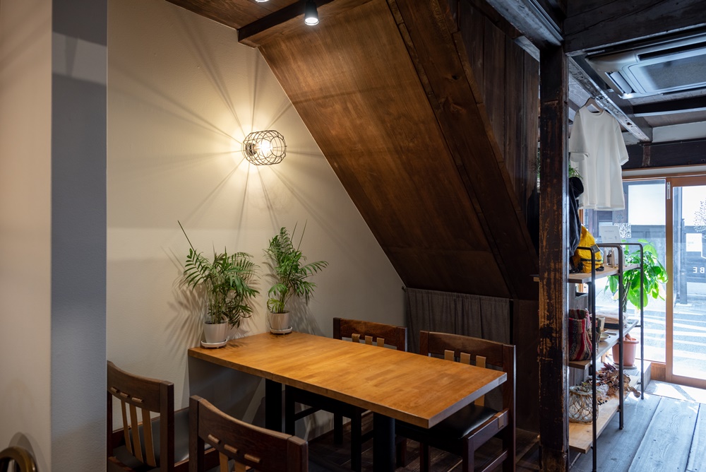 店内は京町家ならではのやわらかく落ち着いた雰囲気。緑が多く、温かみのある光で満たされています。流れる音楽も「ローファイ」というジャンルのゆったりとしたものに統一。心身ともにくつろぐことができます。