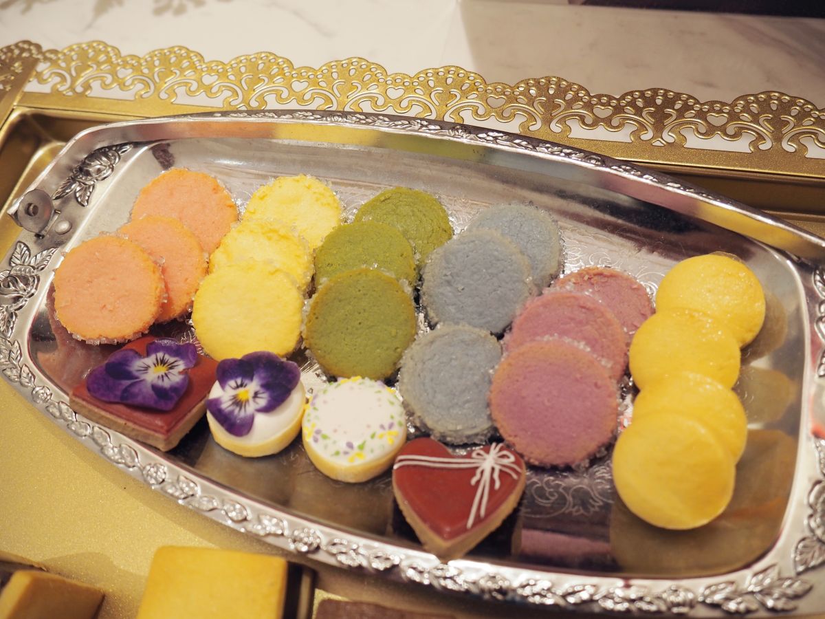1階のホテルショップ「アルモニー」では、宝塚歌劇に関連したグッズやお菓子などを販売。中でも、宝塚駅南口に店を構えるフレンチレストラン「マグノリア」が手掛けた「マグノリア 宝塚すみれクッキー」1800円は、エディブルフラワーやアイシングをあしらうなど可愛らしい一品です。